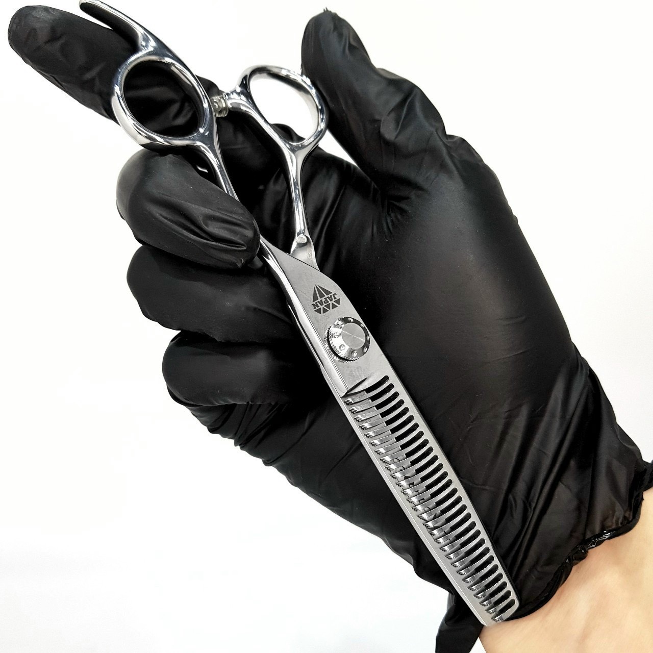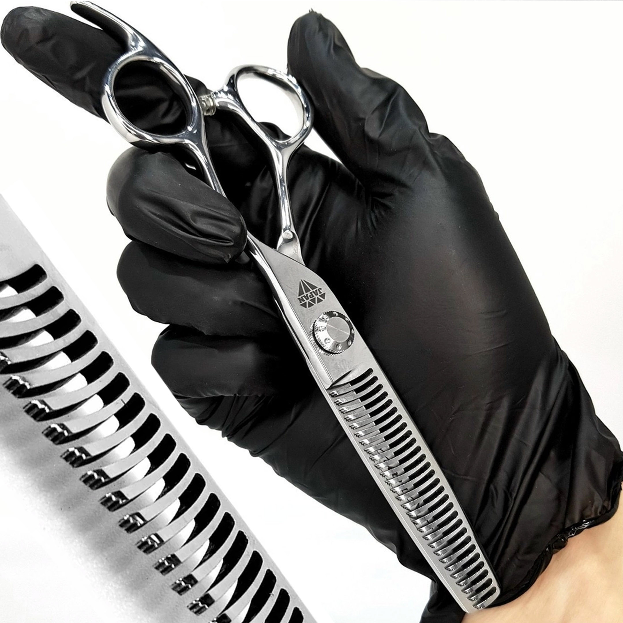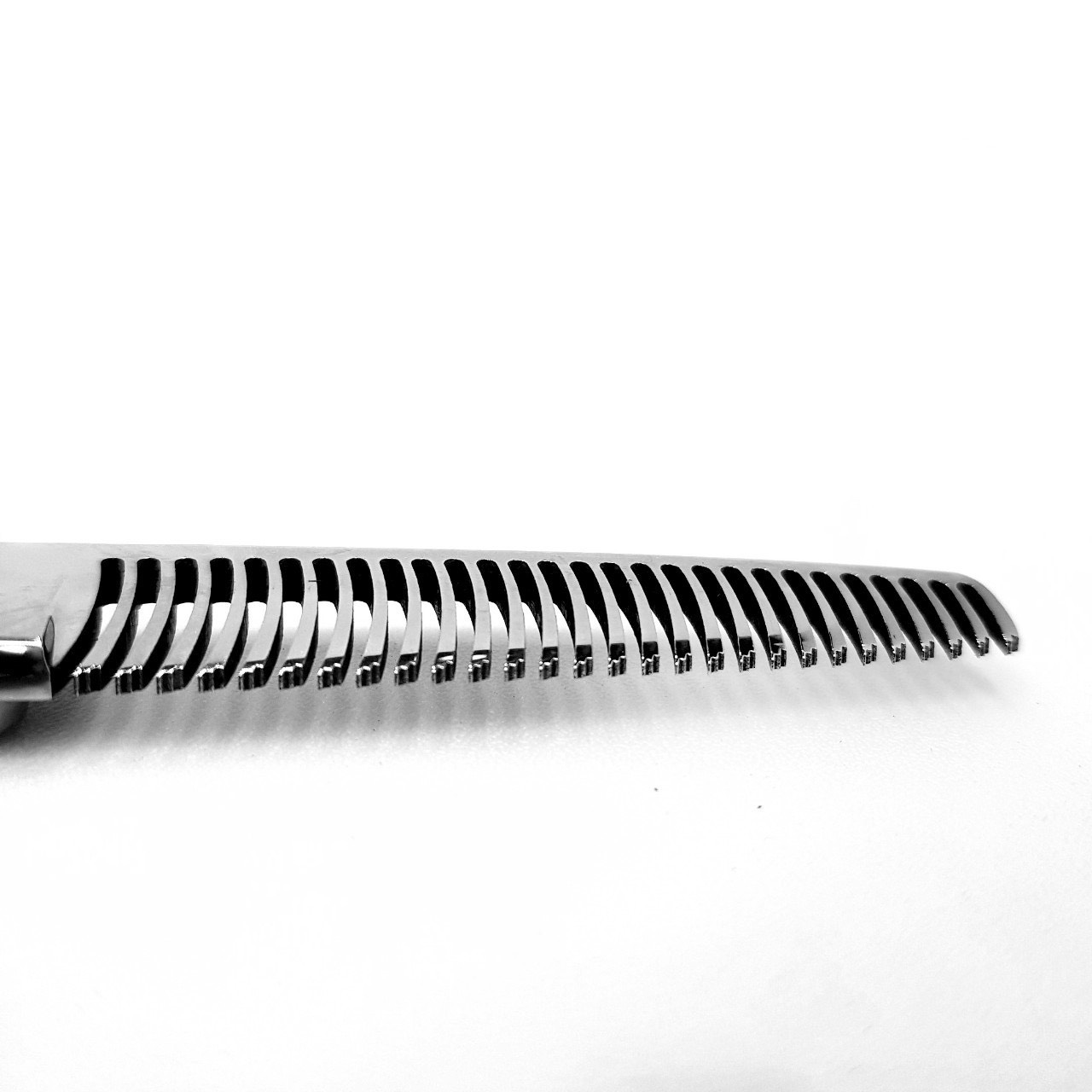 - Lưỡi kéo dạng răng cưa rất tỉ mỉ, có độ bóng, sắc bén, tăng độ sắc nét khi cắt