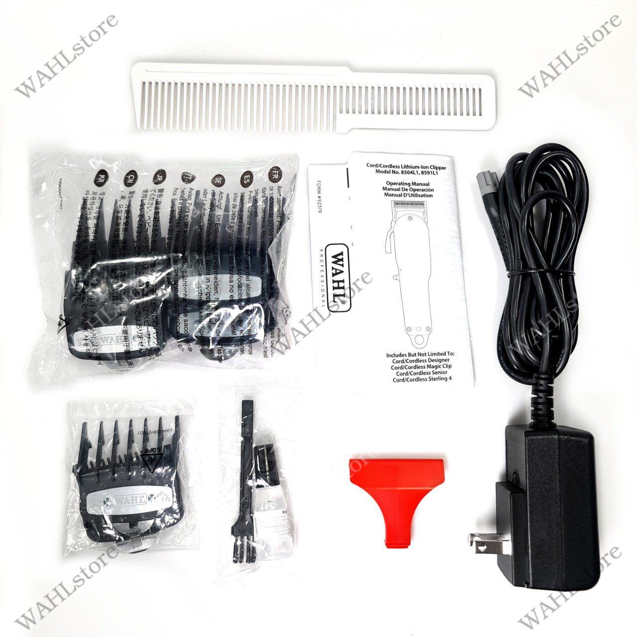 🎒 Phụ kiện gồm: 8 cữ gá thép, 1 cục sạc, 1 dầu tra, 1 chổi phủi, 1 dầu tra, 1 lược, nắp chụp bảo vệ lưỡi