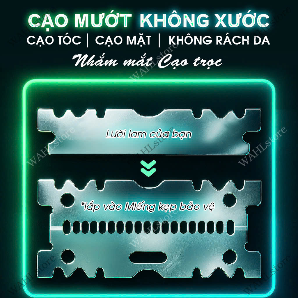 • Cách dùng ➝ cho lưỡi lam đơn vào bản kẹp ➝ lắp vào dao cạo như bình.